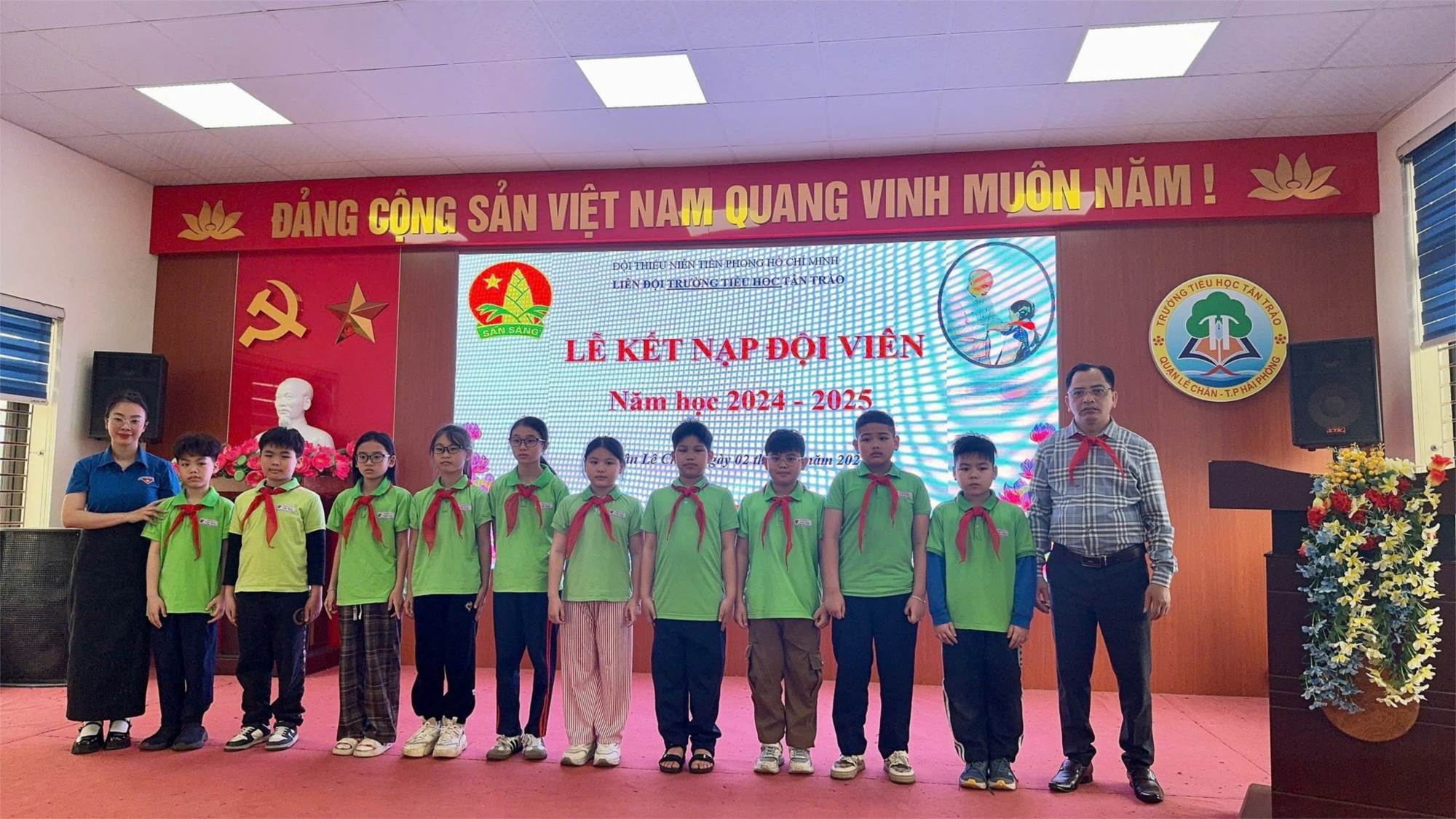 gày 02/4/2025 BCH Liên đội trường TH Tân Trào đã tổ chức lễ kết nạp đội viên cho 56 em học sinh lớp 4, lớp 5 tự nguyện xin vào tổ chức Đội TNTP Hồ Chí Minh.
