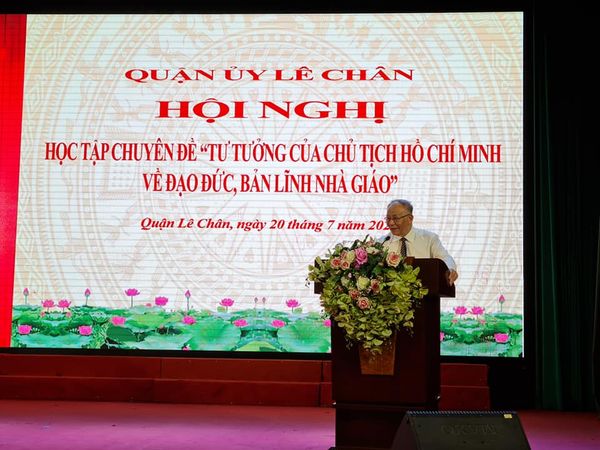 Chiều 20/7/2022, Quận ủy Lê Chân tổ chức Hội nghị học tập chuyên đề “Tư tưởng của Chủ tịch Hồ Chí Minh về đạo đức, bản lĩnh nhà giáo” cho cán bộ chủ chốt ngành giáo dục và đào tạo quận.