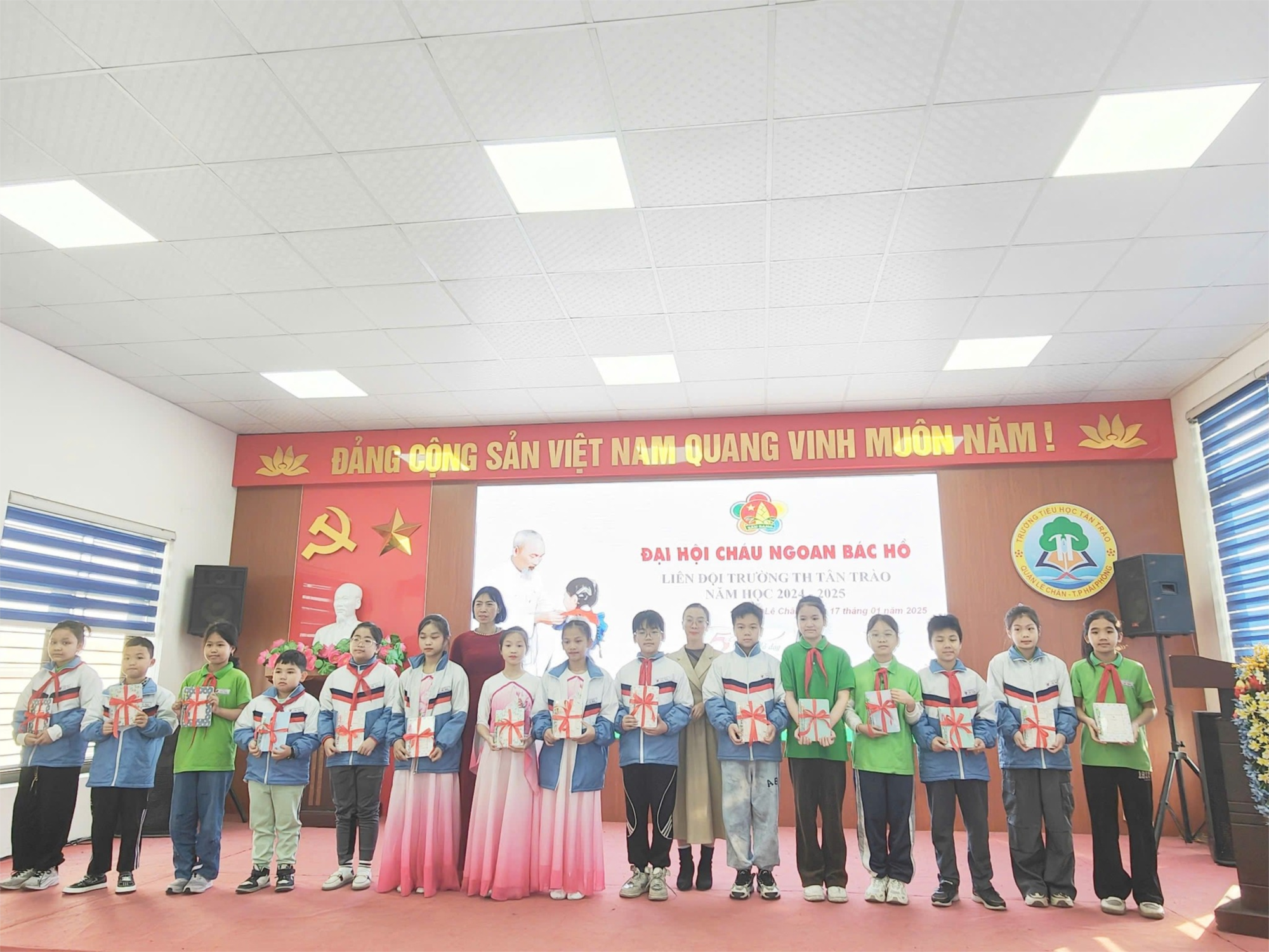 Thực hiện chương trình công tác Đội và phong trào thiếu nhi năm học 2024 - 2025; theo sự chỉ đạo của Hội đồng Đội quận Lê Chân; được sự đồng ý của BGH nhà trường, sáng 17/01/2025 Liên đội Trường Tiểu học Tân Trào long trọng tổ chức Đại hội cháu ngoan Bác Hồ năm học 2024 - 2025.