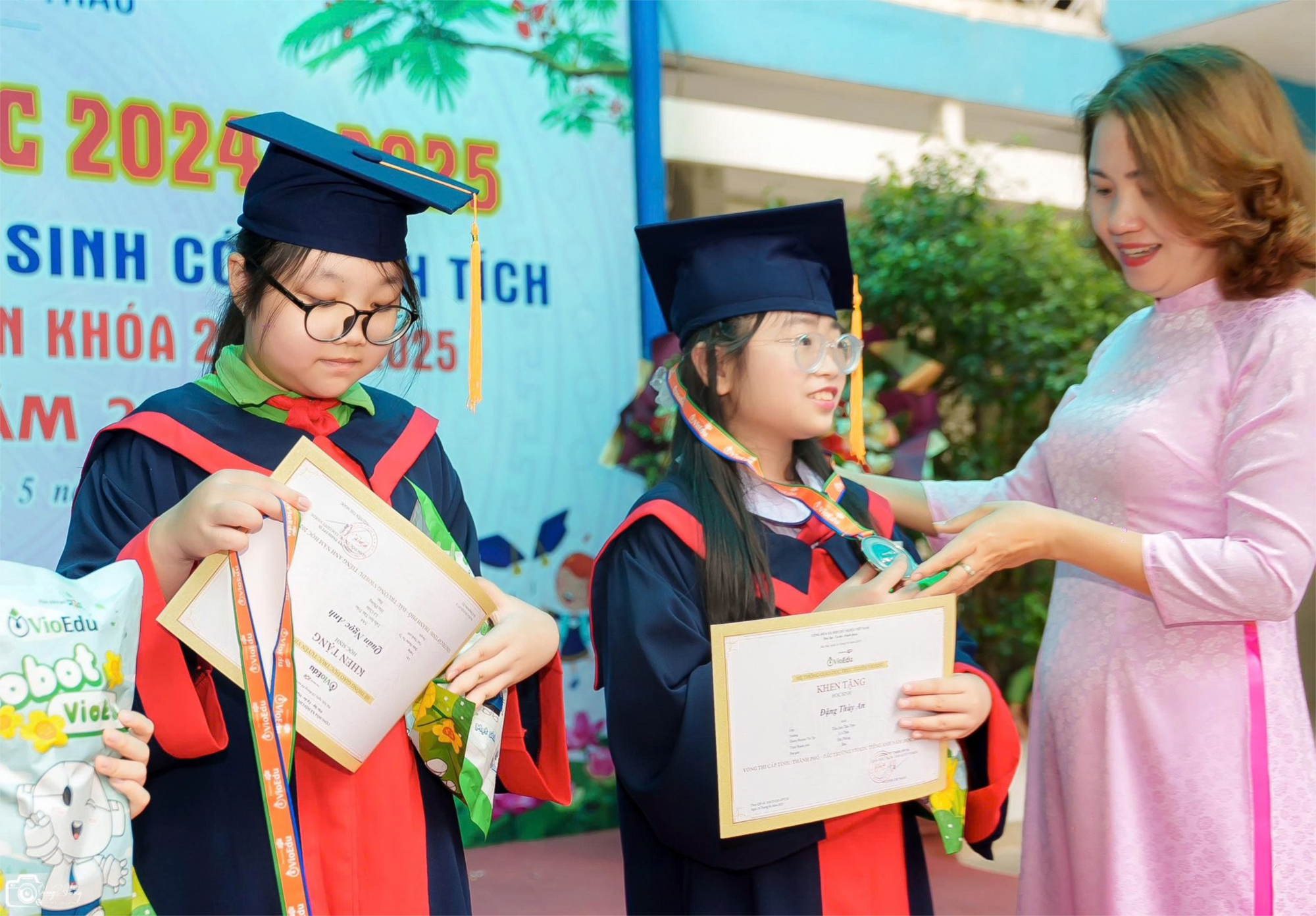 Tại buổi lễ, 116 học sinh, 23 giáo viên và 10 lớp xuất sắc đã được vinh danh, biểu dương, khen thưởng vì thành tích xuất sắc trong các kỳ thi cấp trường, quận, thành phố, quốc gia và quốc tế với tổng số 123 giải các cấp, tăng 98 giải so với năm học trước, trong đó có 17 giải quốc gia, quốc tế; 19 giải cấp Thành phố; 10giải cấp Quận, 77 giải cấp trường ở các môn VH, nghệ thuật, TDTT.