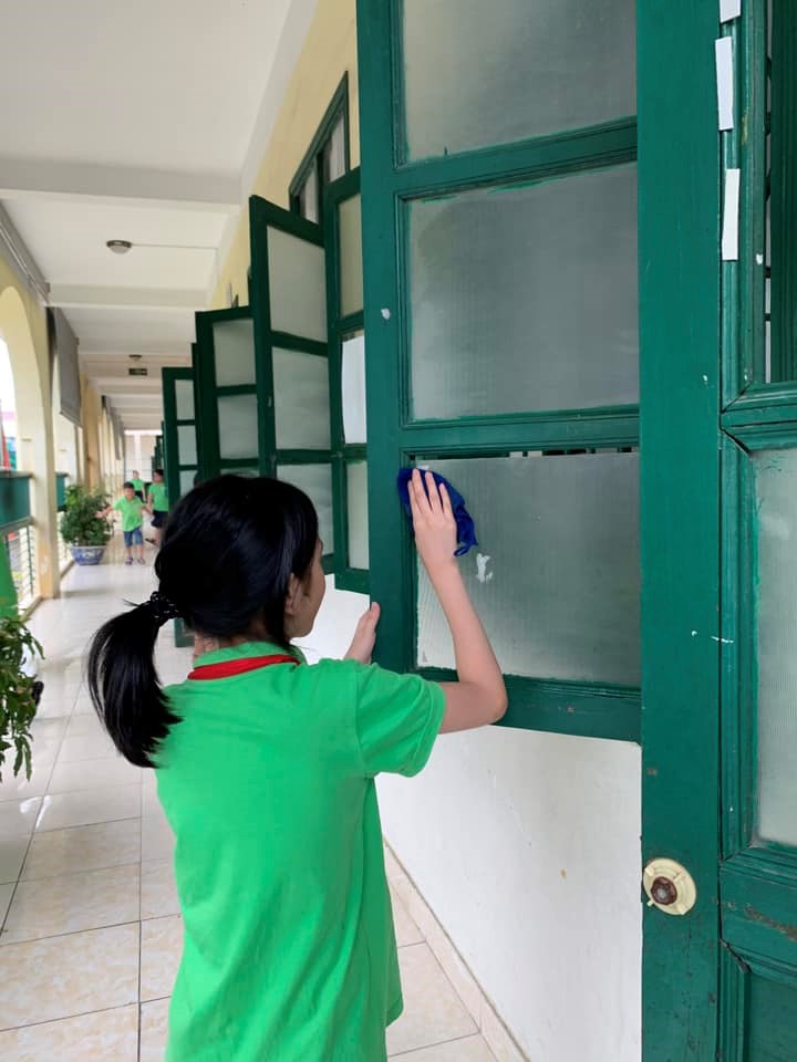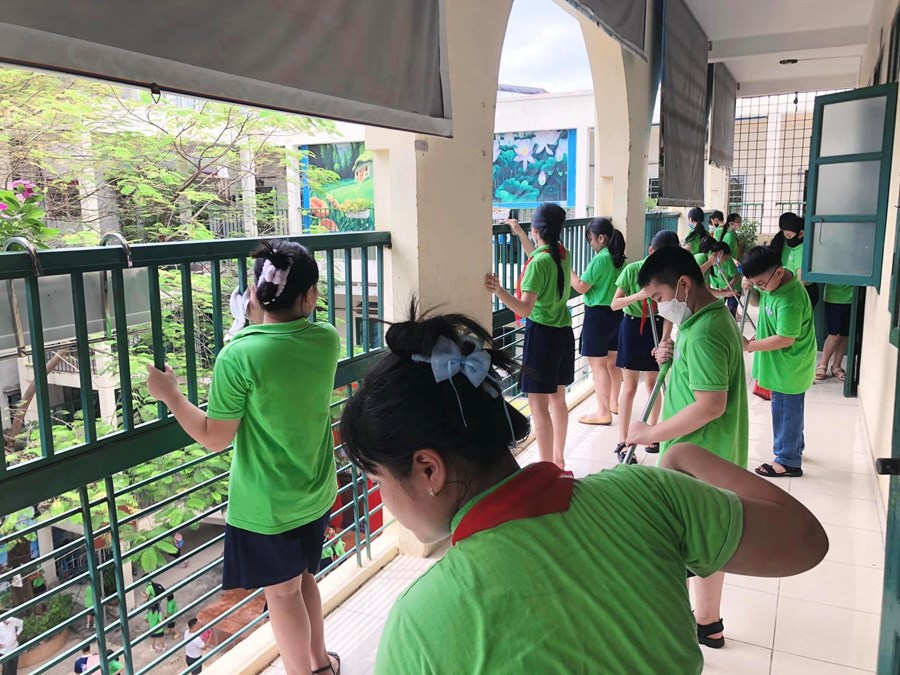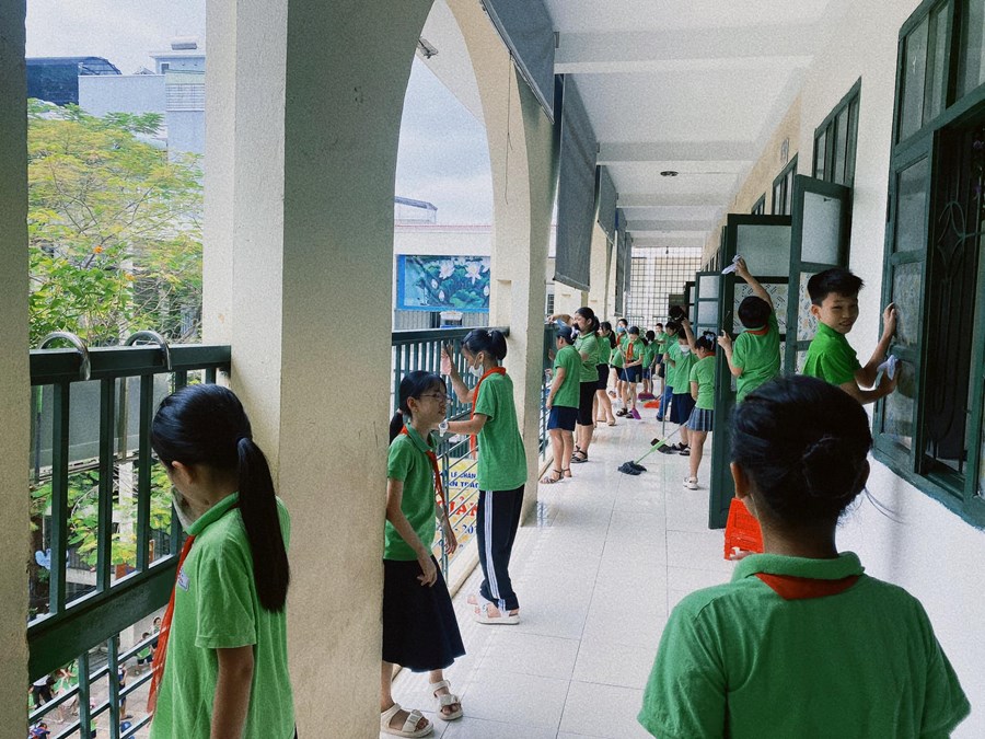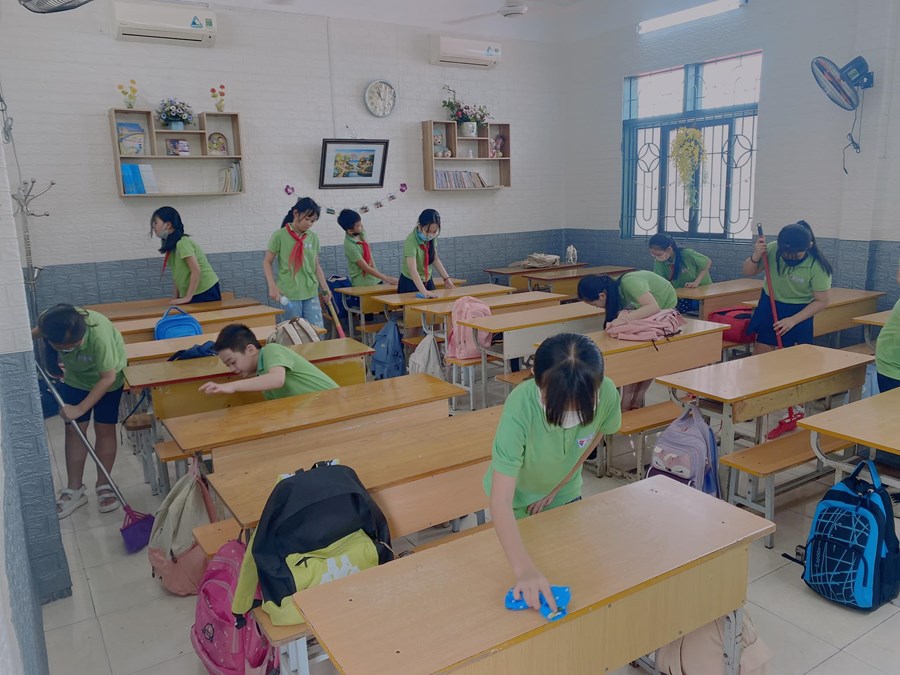 Ngày hôm nay, học sinh khối lớp 5 trường Tiểu học Tân Trào đã có một buổi lao động tổng vệ sinh trường lớp thật vui vẻ, ý nghĩa. Bạn nào cũng hăng hái lao động, tự tay lau từng chiếc bàn, chiếc ghế, từng ô cửa sổ và hành lang lớp học... để ngôi nhà Tân Trào của chúng em luôn sạch sẽ, khang trang.