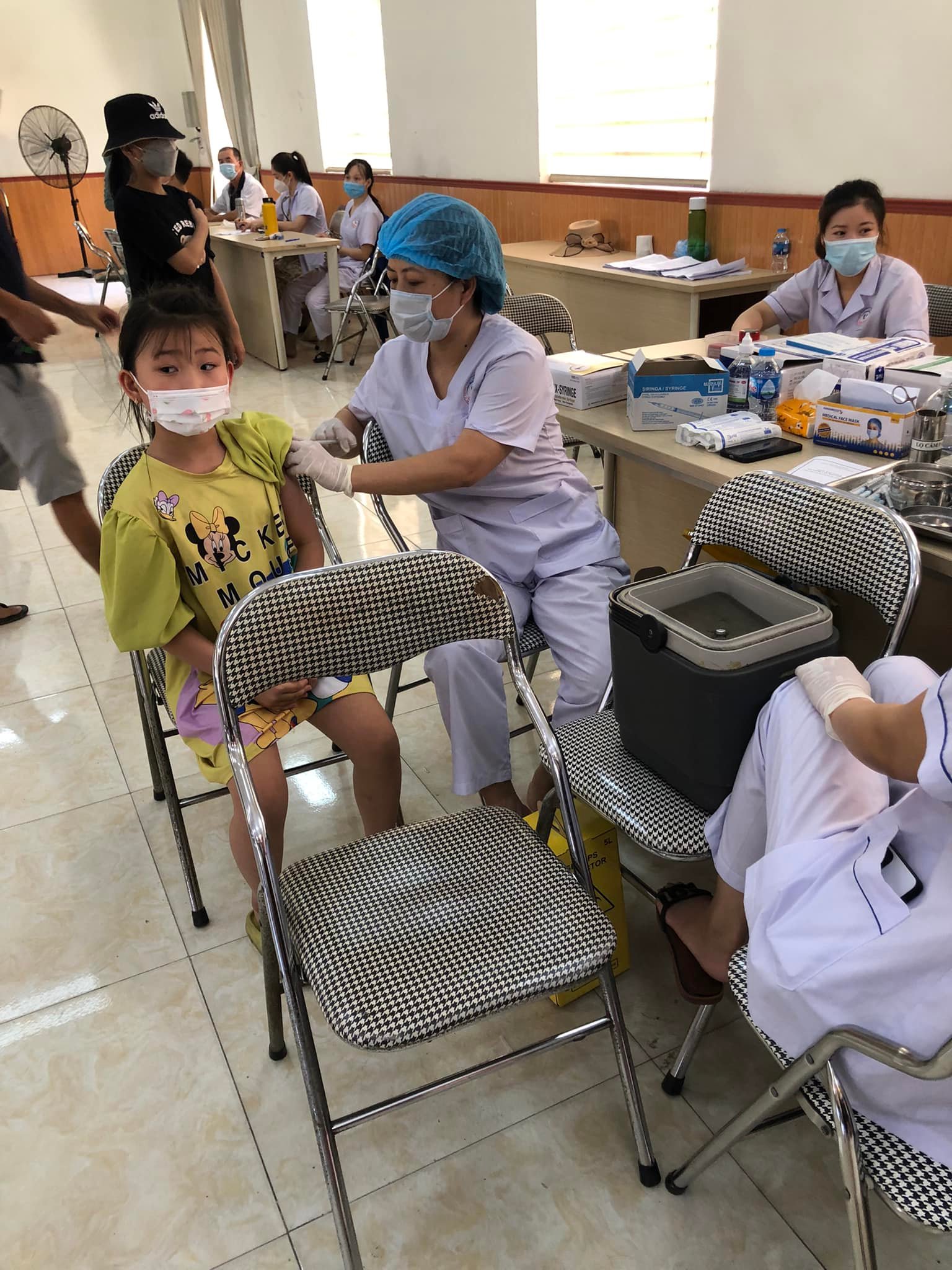 Nhà trường đã bố trí nhân lực kết hợp với trạm y tế hai phương làm tốt công tác tiêm phòng.